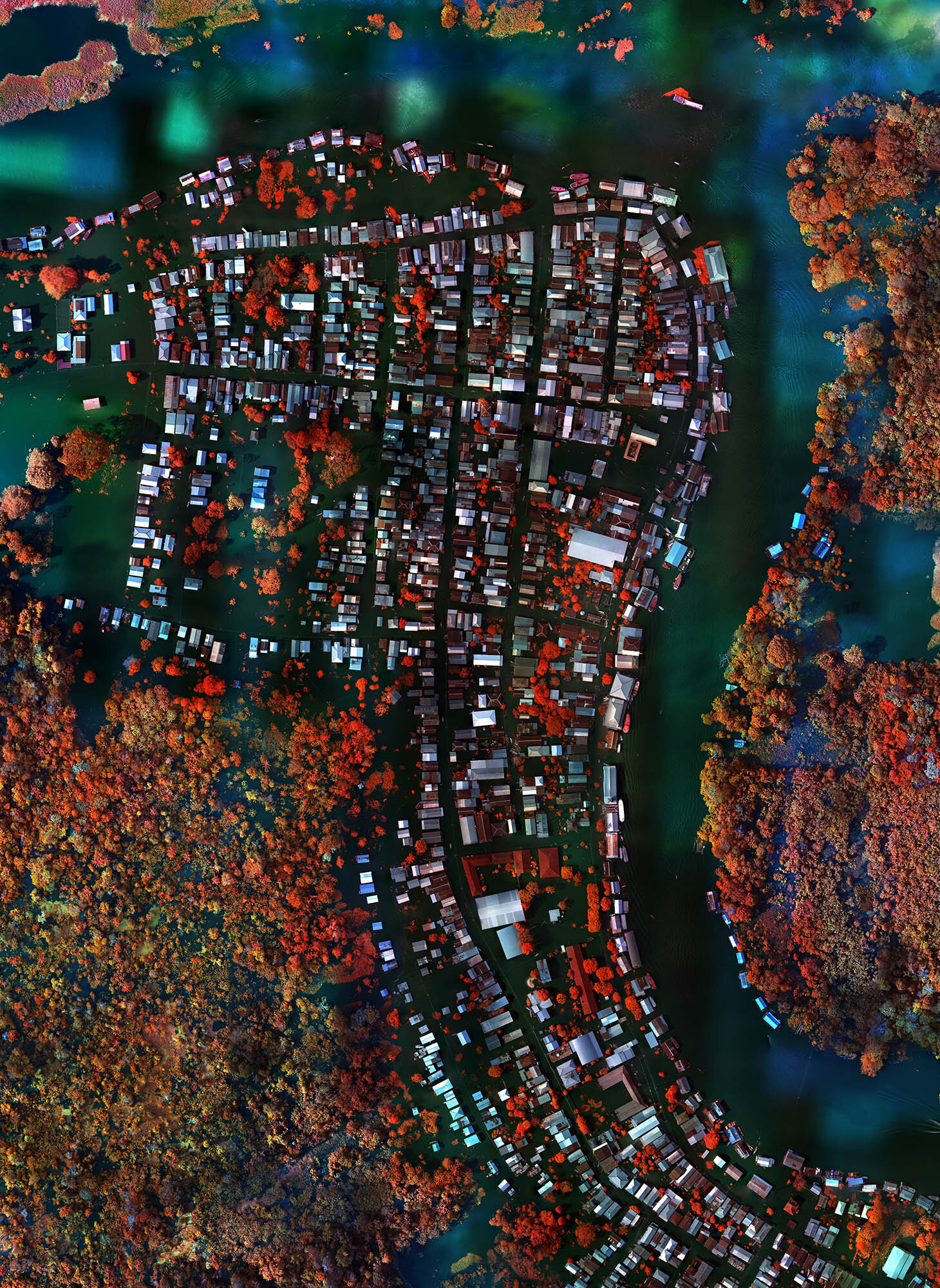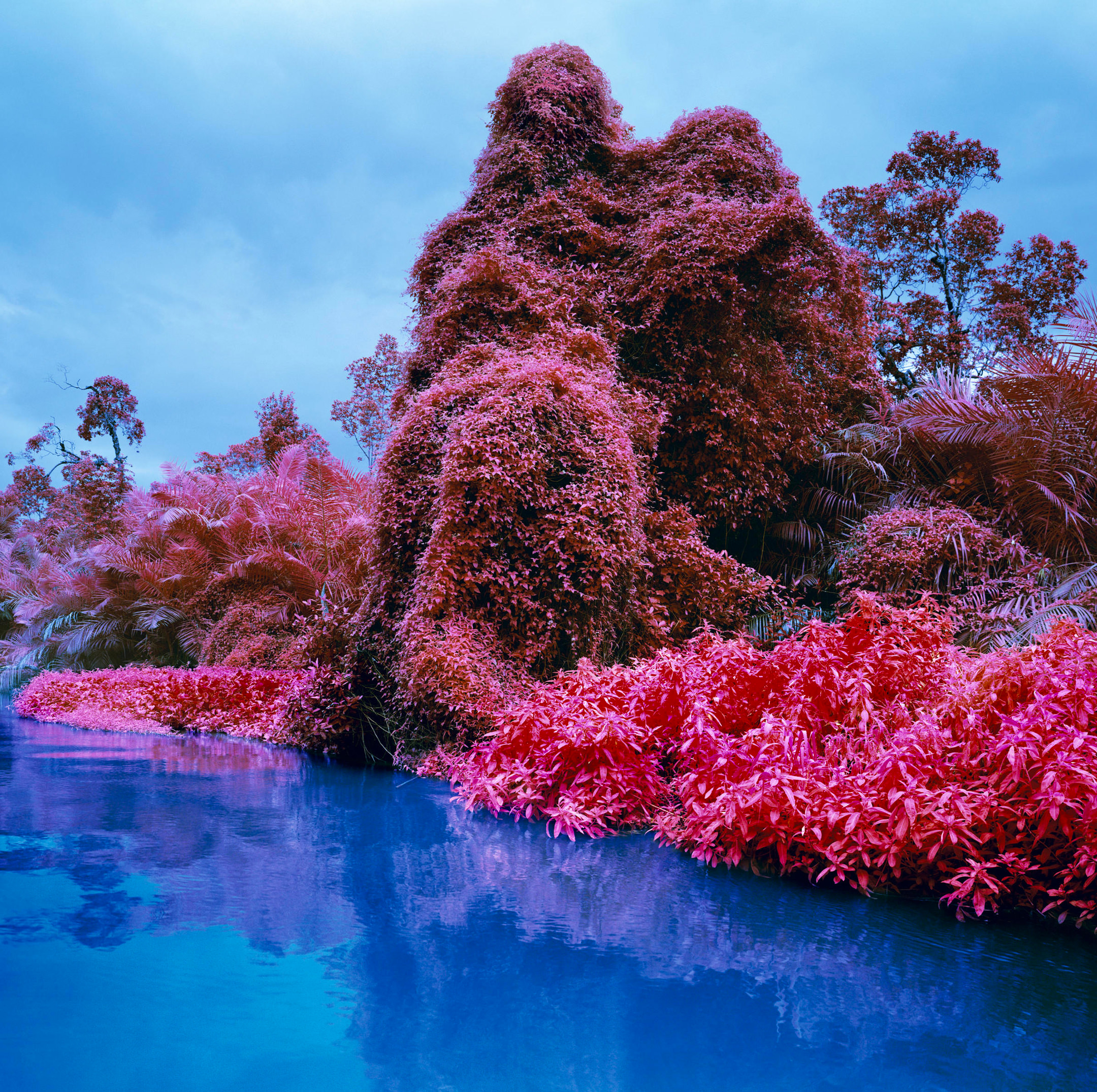 The Infra series is marked by Mosse’s use of Kodak Aerochrome, a discontinued reconnaissance infrared film. The film registers chlorophyll in live vegetation. The result is the lush Congolese rainforest rendered into a beautifully surreal landscape of pinks and reds. Mosse said in an interview with The British Journal of Photography "I wanted to export this technology to a harder situation, to up-end the generic conventions of calcified mass-media narratives and challenge the way we're allowed to represent this forgotten conflict… I wanted to confront this military reconnaissance technology, to use it reflexively in order to question the ways in which war photography is constructed."