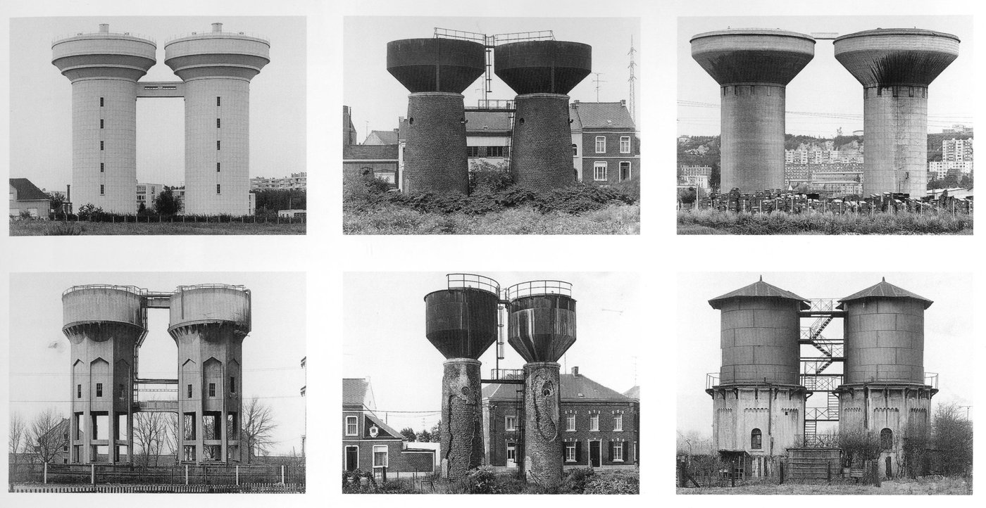 Bernd et Hilla Becher sont un couple de photographes allemands qui depuis les années 50 photographient des bâtiments industriels comme des puits de mine, des châteaux d’eau, des usines ou des silos à grains.